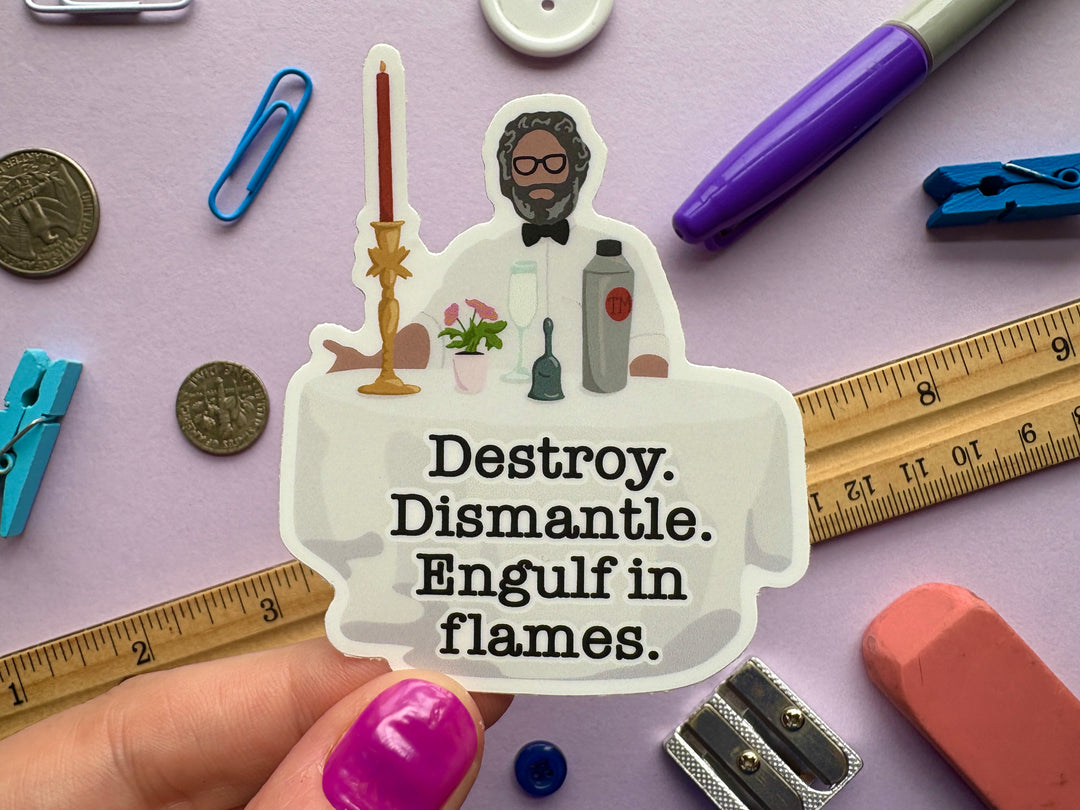 Destroy Dismantle Engulf in flames Sticker (Jason Mantzoukas)