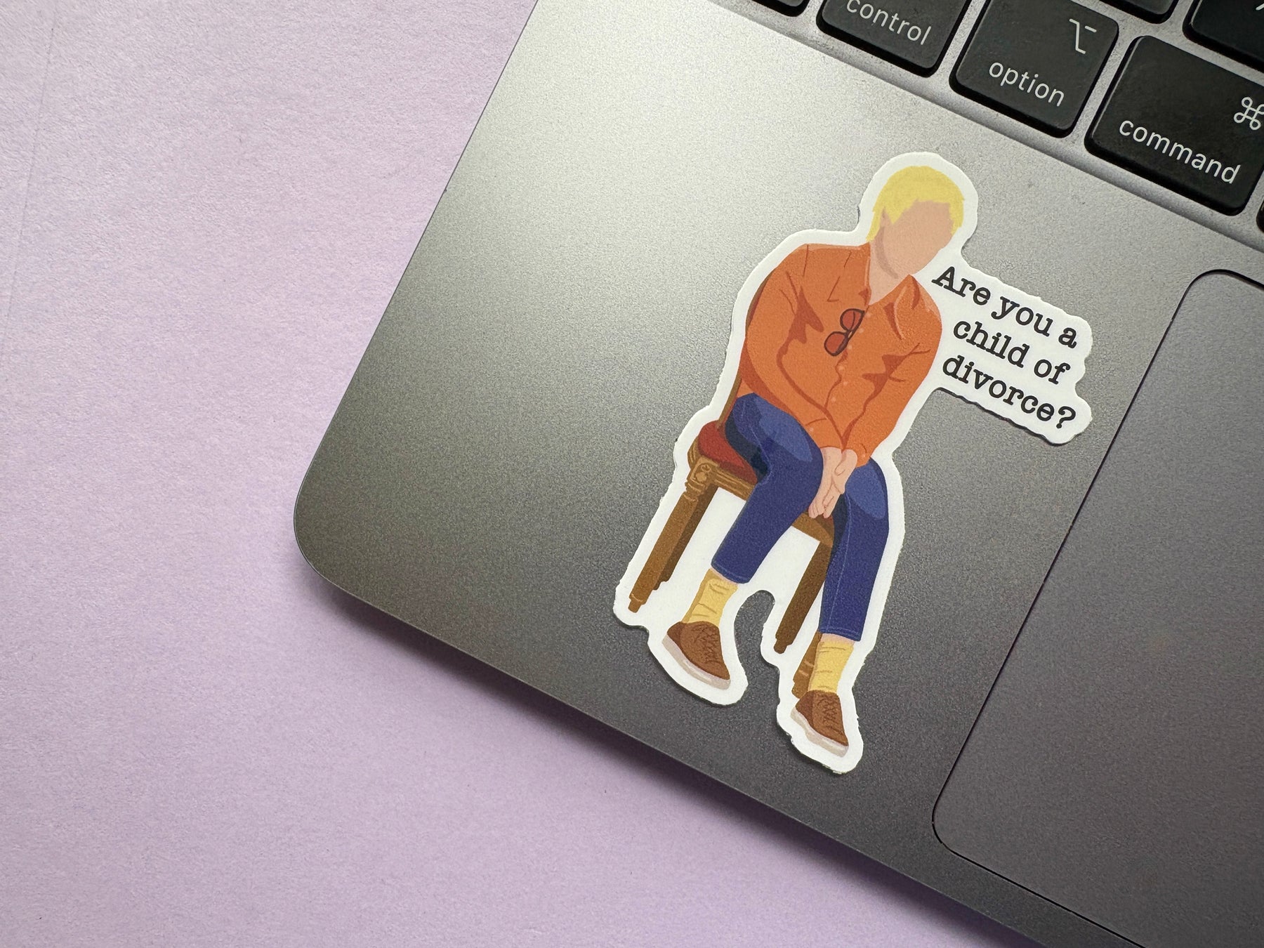 A sticker of comedian Chris Ramsey with his arms spread yelling "No way!" from the TV show Taskmaster is shown on a purple background surrounded by small objects.